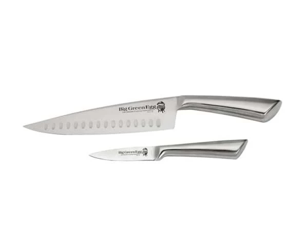 De messen zijn ergonomisch ontworpen door de chefkoks van Big Green Egg en vervaardigd van hoogwaardig rvs. Het gebogen heft van het koksmes ligt zeer comfortabel in de hand. Het heft van het officemes is relatief lang en breed, waardoor het prettig werkt en u een betere controle over het mes heeft.