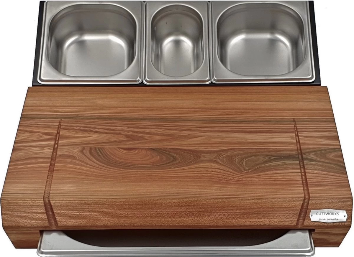 Het is een snijplank, werkplaats en werkplek in één. Het bovenblad is vervaardigd van hoogwaardig Iepenhout. En is een absolute “must have” voor veeleisende gebruikers die een functionele en schone werkplek wensen voor het bereiden van gerechten. Bijna geen enkele ander keukenaccessoire is zo stijlvol als de Bloxxwork Infinity Snijplank met de geintegreerde gastronorm opvangbak.