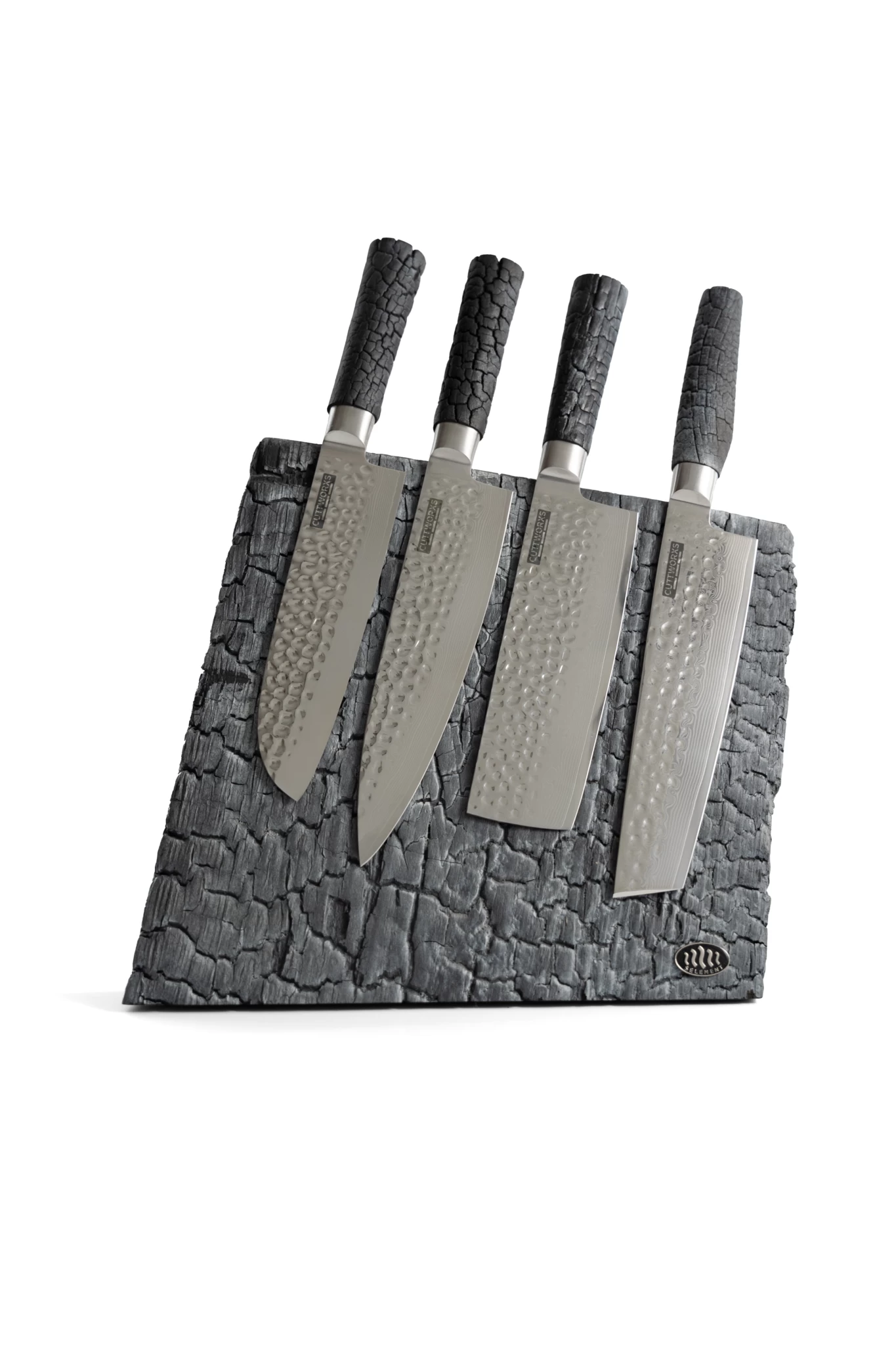 De unieke uitstraling van het met de hand verbrande messenblok maakt het tot een echte blikvanger.