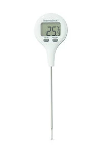 De ThermaStick thermometer meet de temperatuur over een bereik van -49.9 to 299.9 °C met een resolutie van 0.1 °C/°F en is voorzien van 2 drukknoppen, aan/uit en max/min.