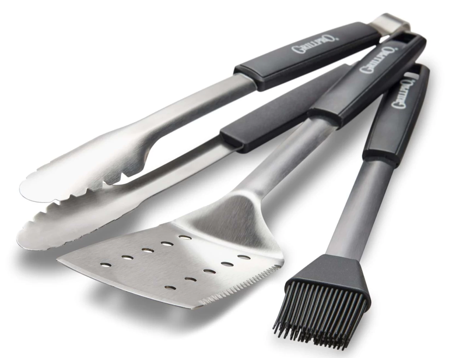 De Grill Pro BBQ bestekset is een 3-delige set geheel gemaakt van roestvrij staal, ook de handgrepen zijn van roestvrij staal. Bestaande uit een spatel, knijptang en een siliconen kwast om marinades aan te brengen op je gerechten.