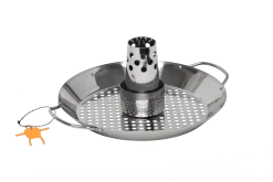 De RVS schaal kun jij gebruiken als groentewok. Je verspreidt diverse groentesoorten over de houder en je hebt in 10 minuten knapperige groenten. Na gebruik pak je het rooster gemakkelijk op aan de handvatten (met handschoenen)