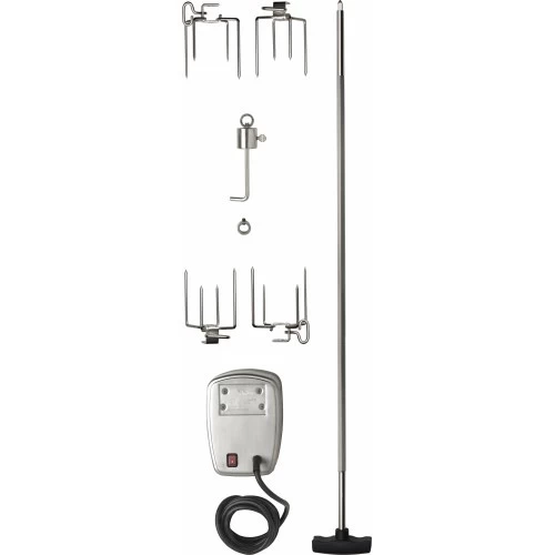 Het koken met een spit is een leuke belevenis en zorgt er voor dat de gerechten nog sappiger blijven. Met dit draaispit haal je nog meer uit je Napoleon PRO500 gasbarbecue! Met de rotisserieset bereidt je heerlijke gegrilde kippetjes, braadstukken, lamsbout of zelfs geroosterde groenten. Door de rotatie van de draaispit bedruipt het gerecht zichzelf en gaart het in zijn eigen vocht. Dit geeft een heerlijk sappig en mals resultaat met een krokant korstje.