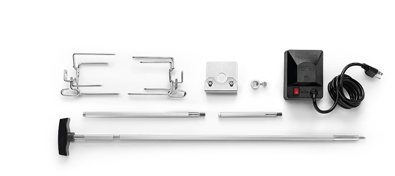 Het koken met een spit is een leuke belevenis en zorgt er voor dat de gerechten nog sappiger blijven. Met dit draaispit haal je nog meer uit je Napoleon Rogue gasbarbecue! Met de rotisserieset bereidt je heerlijke gegrilde kippetjes, braadstukken, lamsbout of zelfs geroosterde groenten. Door de rotatie van de draaispit bedruipt het gerecht zichzelf en gaart het in zijn eigen vocht. Dit geeft een heerlijk sappig en mals resultaat met een krokant korstje.