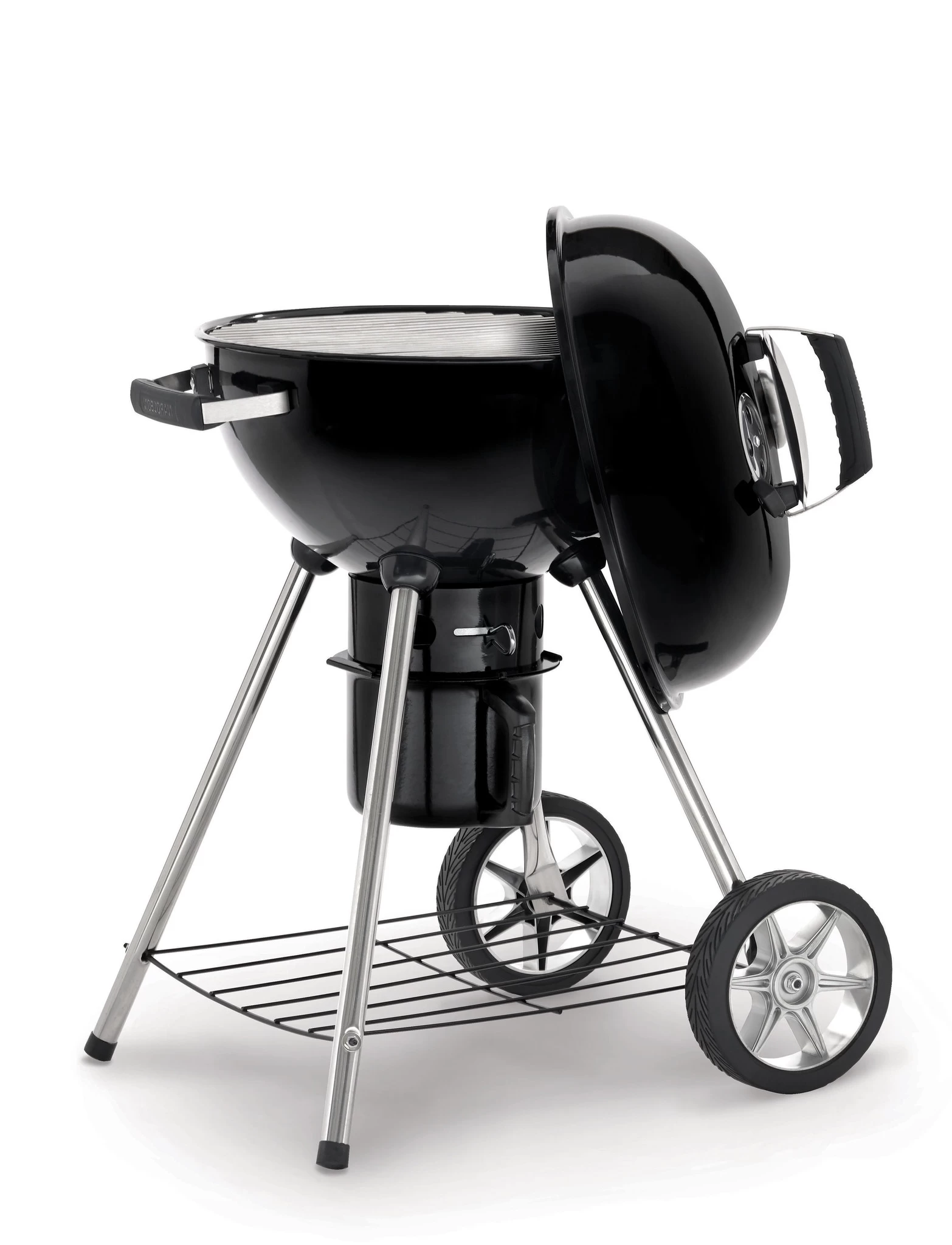 De compacte en flexibele NK18K-LEG heeft een diameter van 47 cm en is ideaal is voor de echte houtskoolliefhebber. Dankzij de weerbestendige wieltjes rijdt u deze houtskoolkogelbarbecue zo overal naartoe. Grill, rooster of smook uw favoriete gerechten over houtskool en voeg houtsnippers toe voor een nog lekkerder smaak. Bij houtskoolgrillen is het kunnen regelen van de warmte door middel van luchtstroom essentieel en dit is eenvoudig te bereiken met de verstelbare openingen aan de boven- en onderkant van de grill. Dankzij de ACCU-PROBE™-thermometer kunt u eenvoudig de perfecte temperatuur bewaren en weet u de ideale rook- en grilltemperaturen voor uw gerechten. Het deksel is voorzien van een ingebouwde dekselhanger en een koele handgreep om tijdens het grillen uw handen tegen de hitte te beschermen.