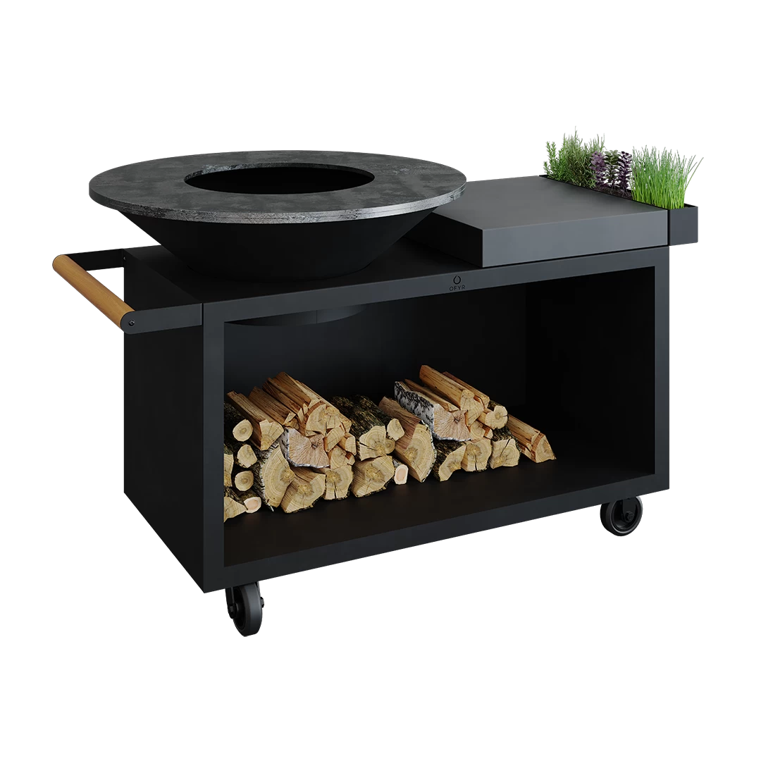 De OFYR Island Black Pro is een complete buitenkeuken met de unieke OFYR vormgeving, hij staat op vier zwenkwielen en kan daardoor eenvoudig verplaatst worden in de tuin. De Island Pro is verder uitgerust met een teak houten of een donker grijze keramisch werkblad voor het bereiden van gerechten. Uitgerust met een praktische houder voor accessoires en specerijen en een houtopslagplaats (± 0,4 m³ hout).