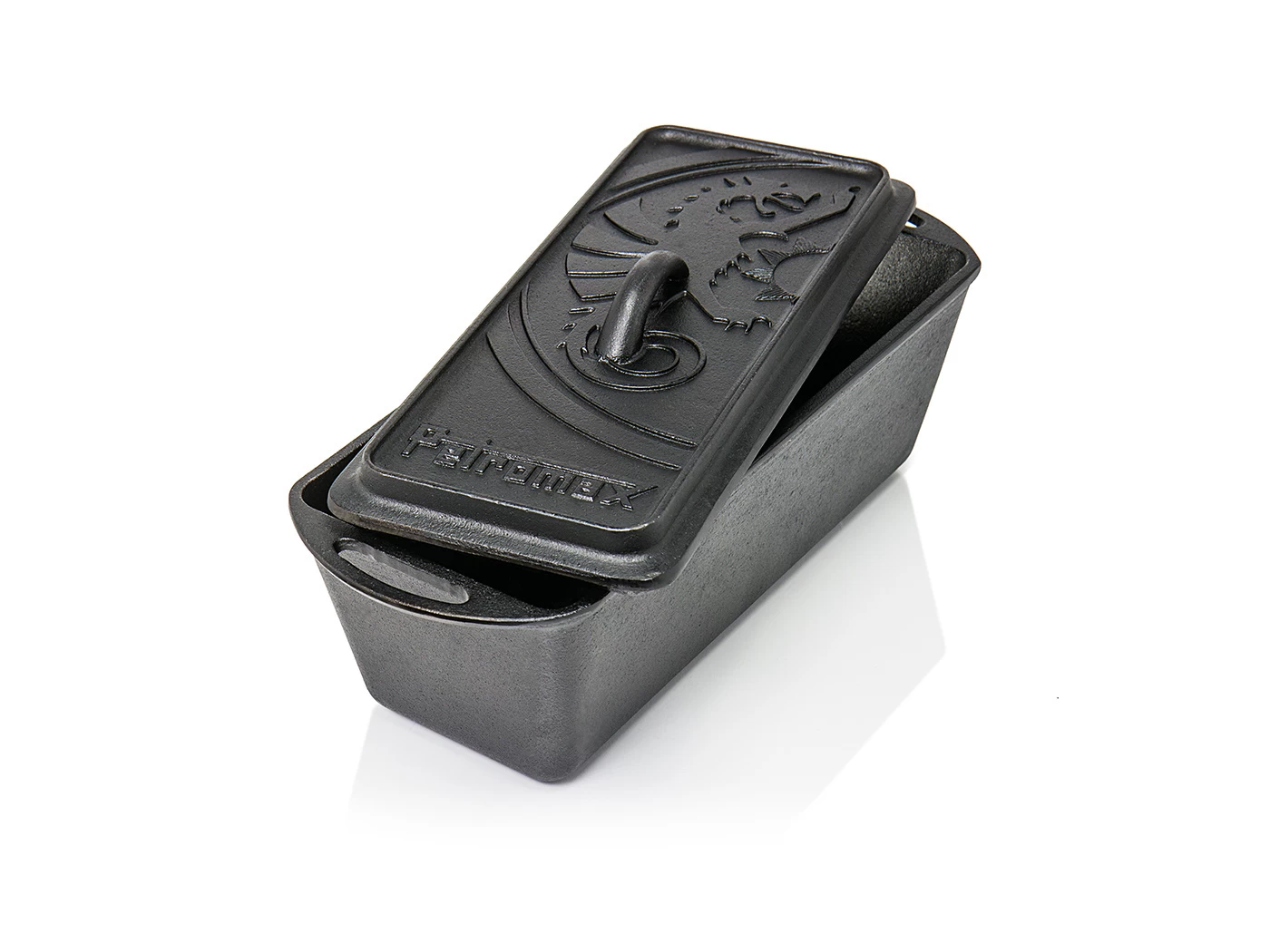 Een broodpan heeft een speciale bakvorm die specifiek ontworpen is voor het bakken van brood. Het is gemaakt van gietijzeren en heeft een rechthoekige vorm met hoge, rechte zijkanten en een platte bodem.De broodpan zorgt ervoor dat het brood tijdens het bakken de gewenste vorm krijgt en voorkomt dat het deeg tijdens het rijzen of bakken uit elkaar loopt.