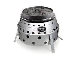 Deze gietijzeren kipstandaard heeft ook een opvangschaal voor het vet, wat het opruimen achteraf gemakkelijker maakt, maar je kan er ook tegelijkertijd aardappels of groenten in grillen. De cilinder kan worden gevuld met vloeistof om de kip van binnenuit gaar en mals te maken. Met behulp van de handvatten aan de zijkant van de pan pak je hem gemakkelijk op en verplaats je hem zelfs nog als hij al helemaal is opgewarmd. Plaats de braadpan in een gesloten BBQ of in de oven voor een perfect resultaat.