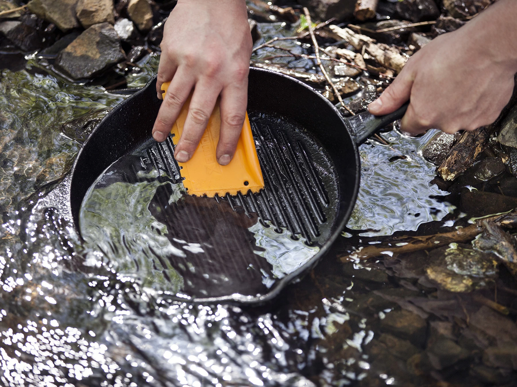 Een schoonmaak schraper is een handig hulpmiddel voor het onderhoud van gietijzeren kookgerei, omdat het helpt om de pan schoon en in goede conditie te houden. Regelmatig onderhoud van je gietijzeren kookgerei is belangrijk om de levensduur te verlengen en te voorkomen dat smaken of geuren worden overgedragen tussen verschillende gerechten.