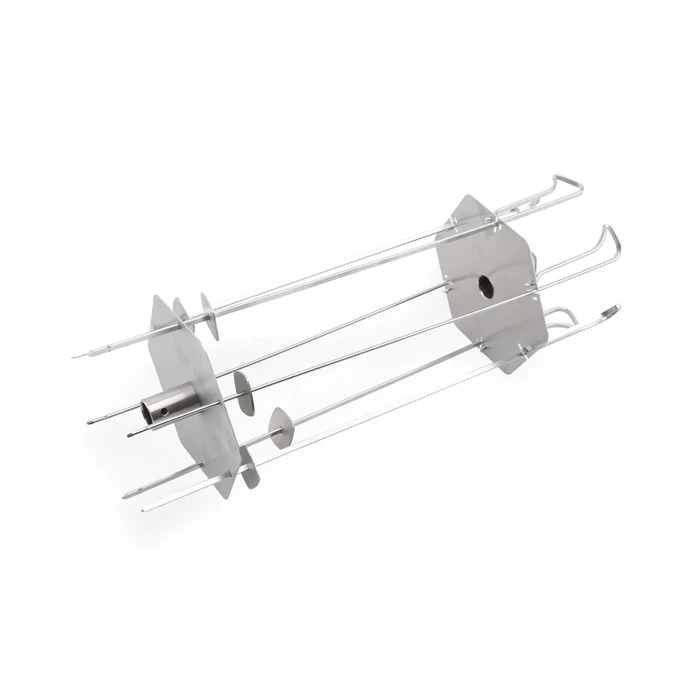 Deze set past op alle rotisseries en maakt het mogelijk veel om veel verschillende producten op je spit te bereiden, zoals vis of vleesspiesjes maar ook lekkere groente spiesen. Doordat de spit draait worden de ingrediënten gelijkmatig gegaard zonder dat je er een vinger naar uit hoeft te steken.