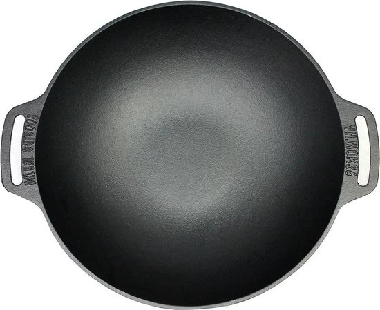 De super mooie en kwalitatief goede Cast Iron Wok geniet de juiste dikte gietijzer. Dat is belangrijk, want daarmee behoudt de wok haar warmte goed vast. De platte bodem heeft een doorsnede van 15cm.